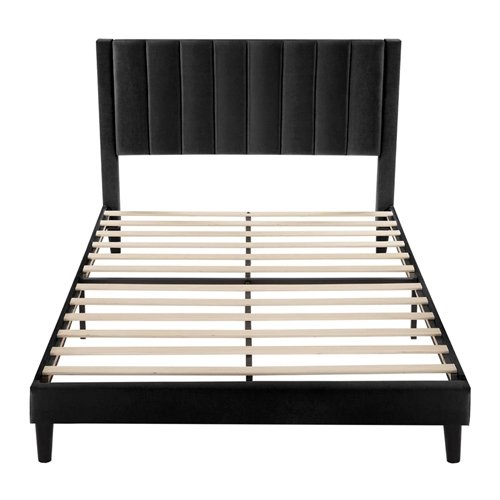 • Full size Modern Black Velvet Upholstered Platform Bed with Headboard