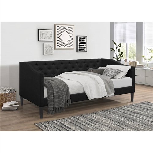 • Twin size Modern Black Fabric Upholstered Button-Tufted Daybed