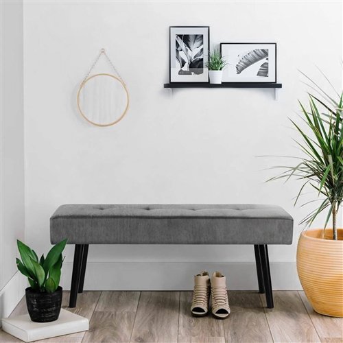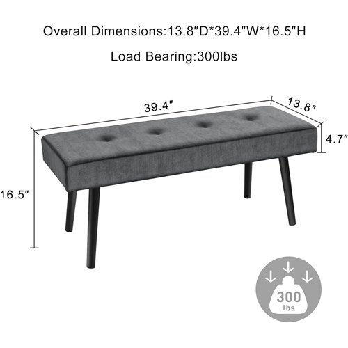 Wrapped in corduroy, the Mid-Century Beige Corduroy Upholstered End of Bed Bench with Black Metal Legs provides a comfortable touch in use. A concise rectangular and stylish button design is the perfect home configuration. Leave it at home as a home bench to enjoy your wonderful leisure time. The Mid-Century Beige Corduroy Upholstered End of Bed Bench with Black Metal Legs is filled with high-density foam, comfortable and practical. Corduroy cushioning provides a soft but supportive seat. Rest your feet on the cushions for pure relaxation and comfort. Not good at crafting? It doesn't matter. We come with detailed installation instructions so you can put them together and enjoy sitting in just a few minutes. Extra bench seat when friends come over, or a stool to use as a bed foot bench. It can fit in any room: end of bed, entry, living room, dining room, or blend in with any decor. Comfy strictly controls the quality to ensure a satisfactory shopping experience for our customers. Worried about not matching your home decor? Don't worry, we have colors for you to choose from! When a friend comes to your home, the bench can be placed in the entrance, living room, bedroom for your friend to sit comfortably. Not comfortable enough to sit on the bed in your bedroom? This bench will be a perfect match for your bedroom and can also be used as a resting space for your pet. It can hold up to 300 pounds and is sturdy and durable.