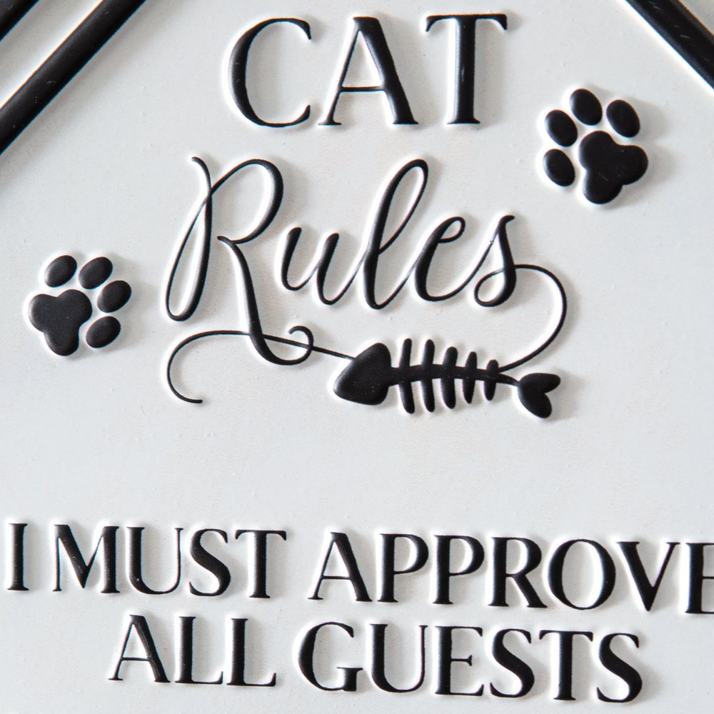 Enhance your home with a touch of feline charm and a dash of humor with our delightful Cat Rules Wall Sign. This charming piece is the perfect addition to any dog lover's space. To hang, use its triangle hanger.