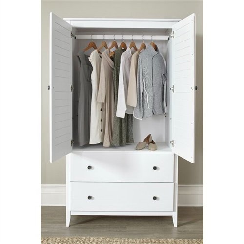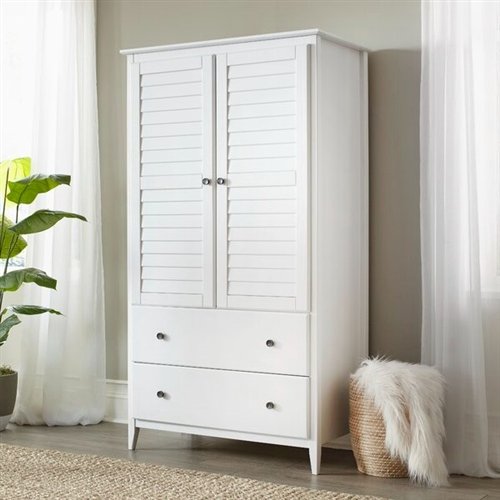 This FarmHome Louvered Distressed Driftwood Solid Pine Armoire has what it takes to give your bedroom that refined FarmHome coastal touch. It's modernized traditional style results in a timeless design, while adding lots of storage with 2 large Louvered doors and two spacious 8 1/4” deep drawers. Made of 100% solid pine wood, this customizable wardrobe features a sturdy construction that can lasts.