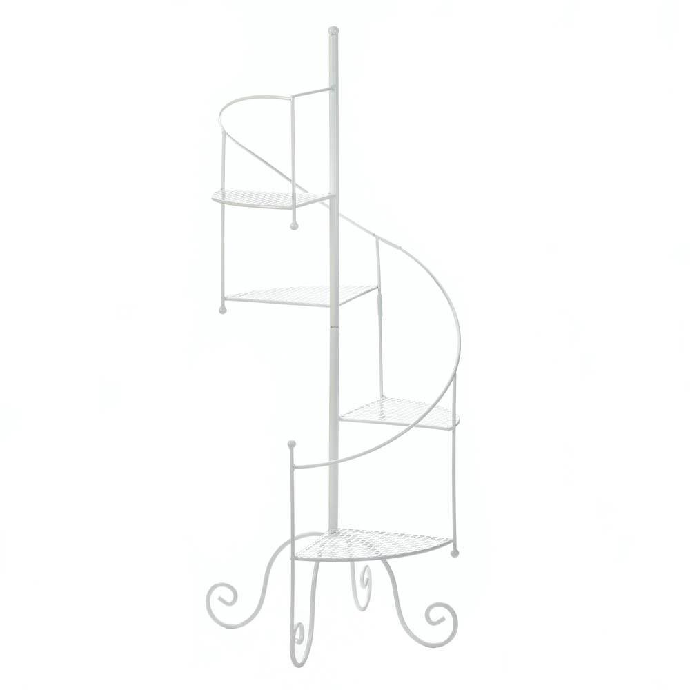 • Give four of your favorite plants a supremely stylish showcase! This metal plant stand features four mesh platforms, a curved 'banister' and four scrolling feet below. Standing at more than three feet tall, it's a grand way to exhibit your green thumb.